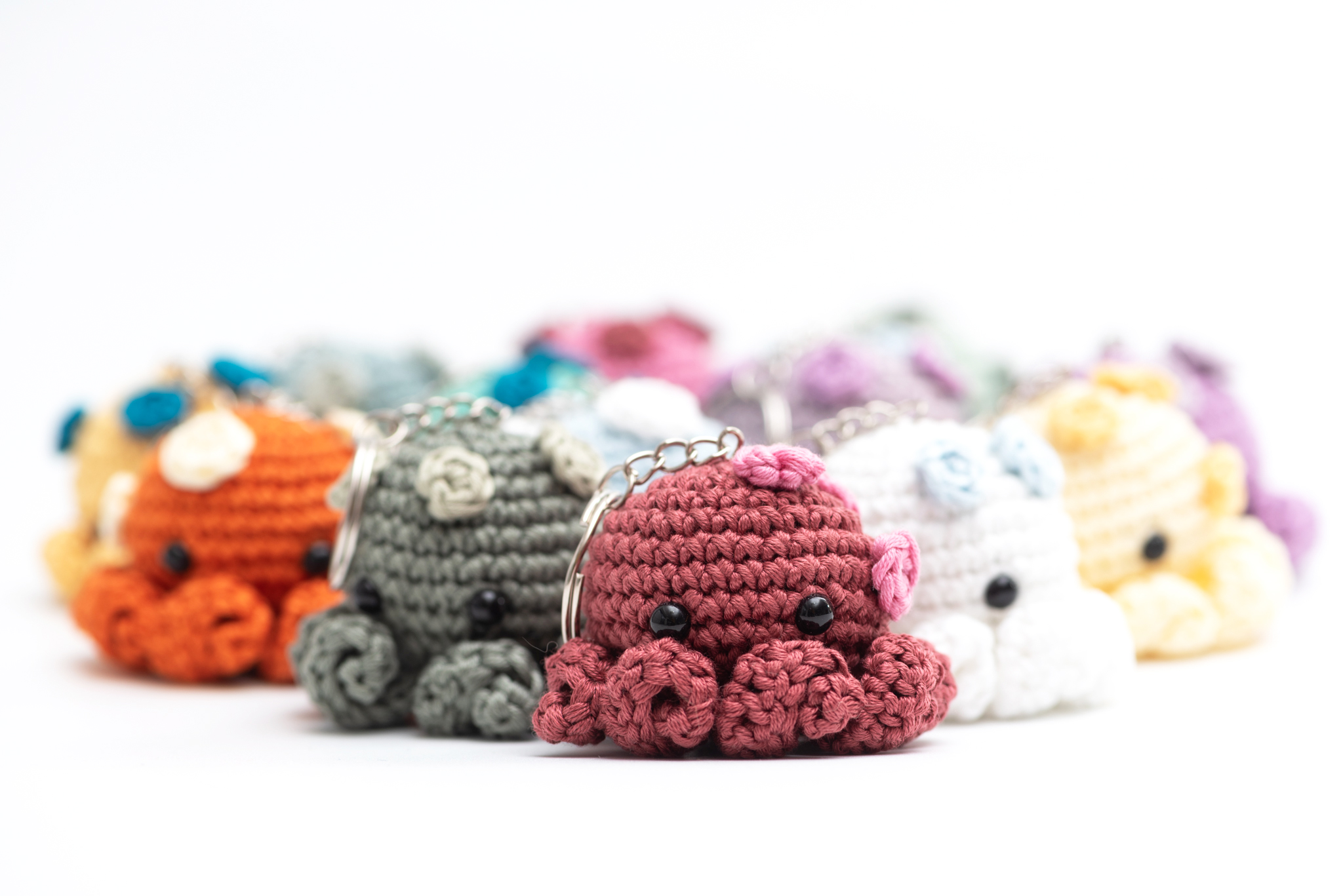 Vidám, színes kis tengerlakó, ami garantáltan feldobja a kulcscsomódat vagy a táskádat! Ez a horgolt polip vicces és egyedi ajándék minden tenger-rajongónak.